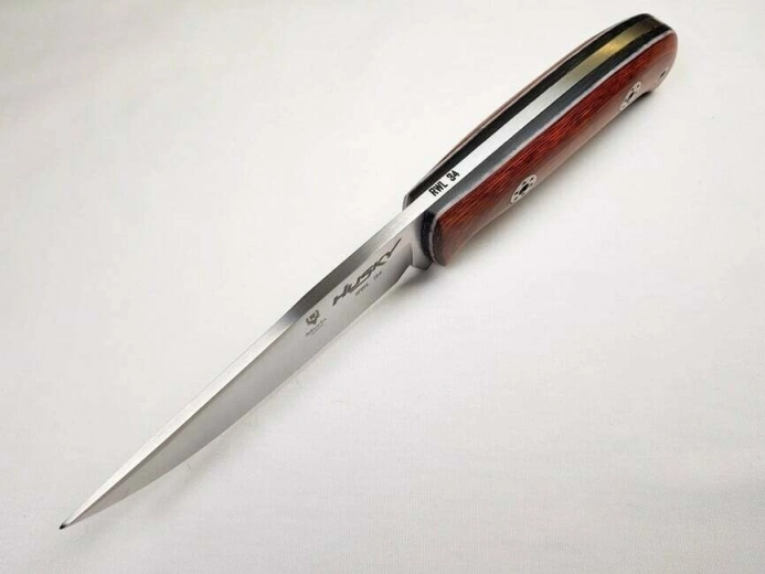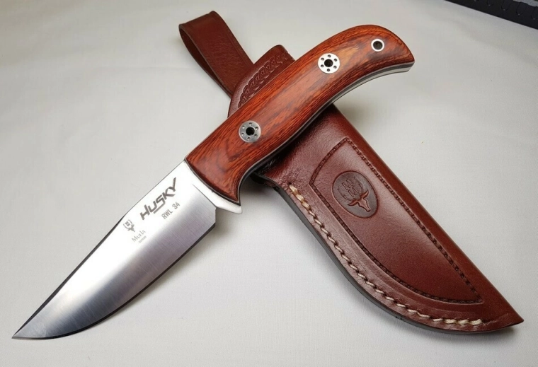 Spolehlivý outdoorový nůž MUELA Husky pro pobyt v přírodě a všestranné venkovní aktivity. Nabízí pevnou full-tang čepel z odolné švédské oceli RWL34 s hladkým ostřím, ergonomickou rukojeť z dřeva Pakka s otvorem pro šňůrku a kvalitní kožené pouzdro pro bezpečné nošení.