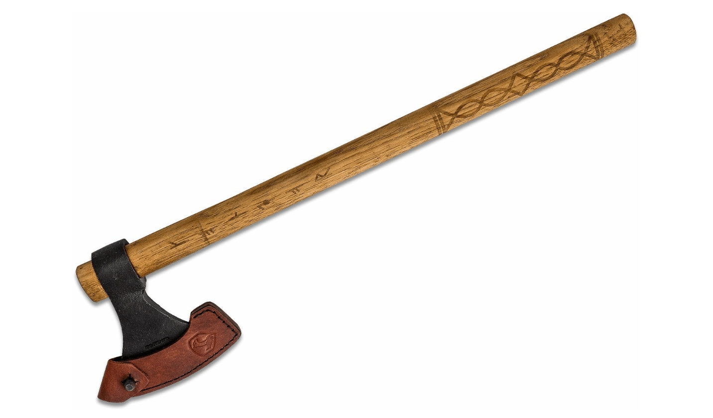 Dlouhá dřevěná násada z amerického ořechovce poskytuje pevný úchop, skvělou páku a jistotu při každém hodu – s efektními runovými detaily.