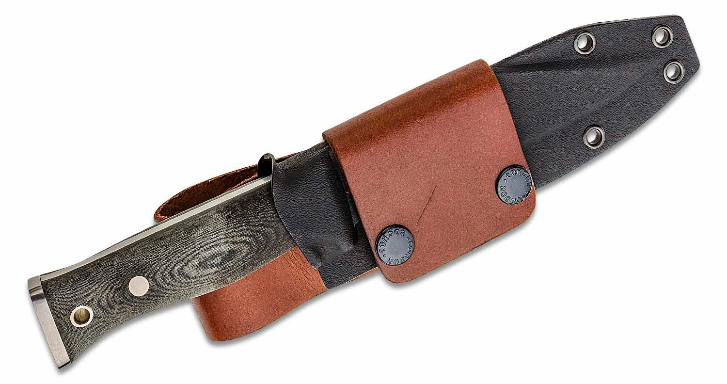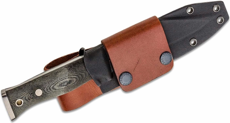 Žebrovaná rukojeť z Micarty v černo-šedé barvě jistě sedí v ruce i v rukavicích a na konci nabízí hlavici pro údery a rozbíjení skla. Celistvá full-tang konstrukce zvyšuje odolnost při batoning-u a těžších úkonech. K noži dostanete kombinované pouzdro Kydex + kůže pro bezpečné a variabilní nošení.