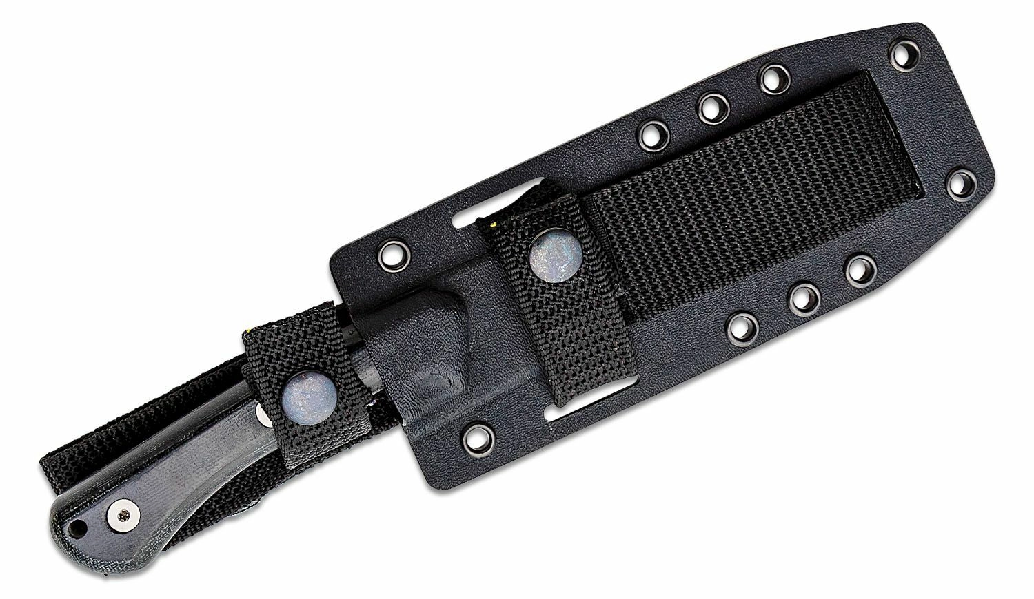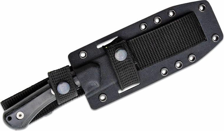 Ergonomicky tvarovaná rukojeť z materiálu Micarta v černé barvě poskytuje jistý úchop i v náročných podmínkách. V patce rukojeti je praktický otvor pro šňůrku nebo závěs. Součástí balení je robustní pouzdro Kydex, které je kompatibilní se systémem MOLLE pro flexibilní nošení na výstroji.