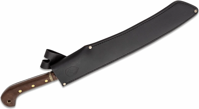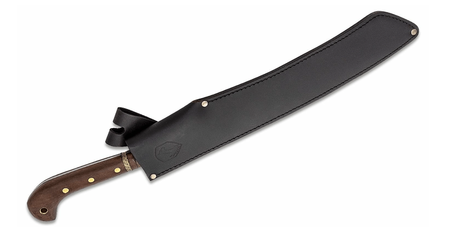 Ergonomická rukojeť z tvrdého dřeva s dekorativním mosazným vinutím skvěle sedí v ruce, zatímco rozšířený konec brání sklouznutí při razantních úderech. Pro bezpečné nošení je součástí balení pevné kožené pouzdro.