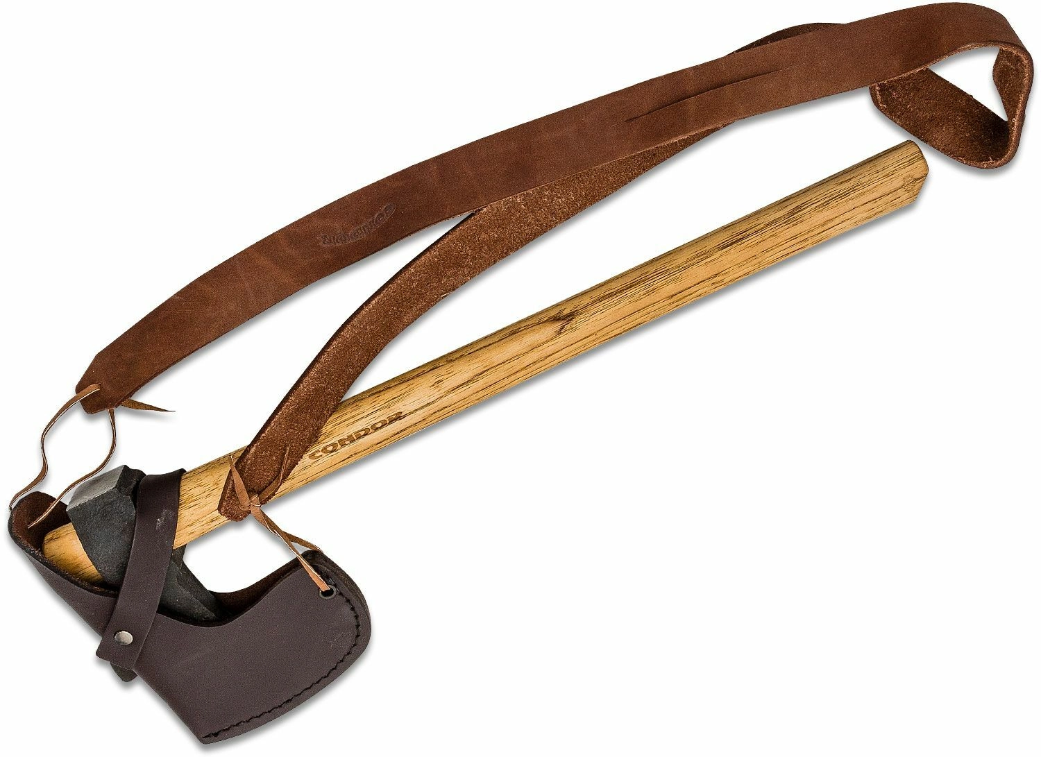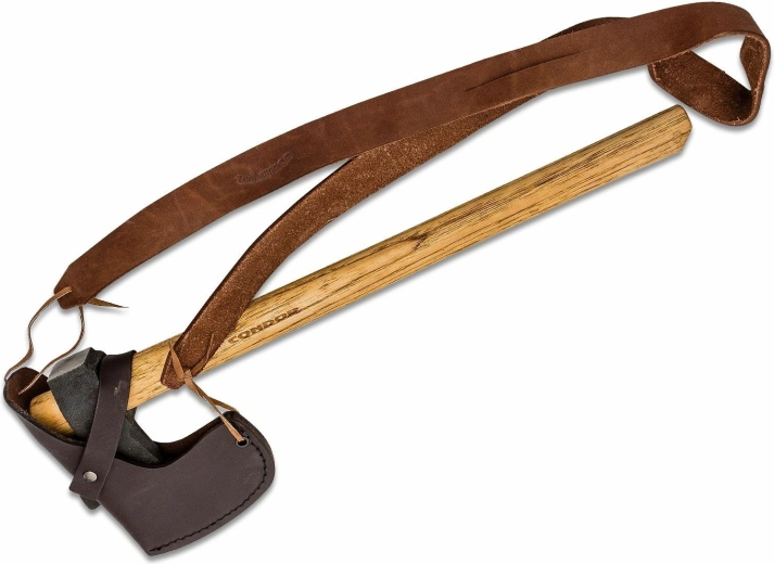 Rukojeť z amerického ořechovce hickory je známá svou pružností a odolností. Je vyměnitelná, takže můžete v případě potřeby snadno nasadit novou, nebo si vyrobit vlastní podle preferencí. Součástí balení je elegantní kožené pouzdro s ramenním popruhem pro bezpečné uložení a pohodlné nošení.