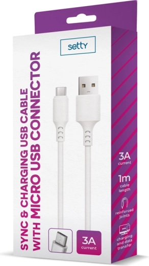 Praktický kabel Setty USB–microUSB je ideální pro každodenní použití doma, v kanceláři i na cestách. Poskytuje stabilní připojení mezi telefonem, powerbankou, nabíječkou či počítačem a díky maximálnímu proudu 3 A podporuje rychlejší nabíjení kompatibilních zařízení.