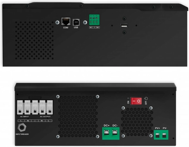 - 3v1: invertor, MPPT regulátor a nabíječka baterií v jednom.