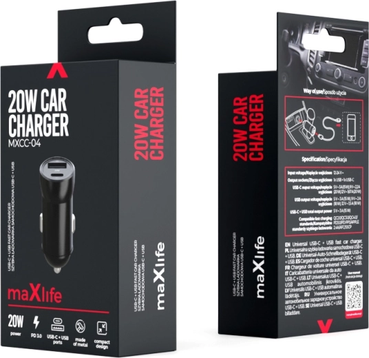 Udržujte svá zařízení nabitá i na cestách. Autonabíječka MAXLIFE MXCC-04 podporuje moderní protokoly Power Delivery 3.0 a Quick Charge 3.0, díky čemuž doplní energii telefonu, navigace či sluchátek rychle a spolehlivě. Maximální výkon 20 W zajistí svižné dobití bez zbytečného čekání.