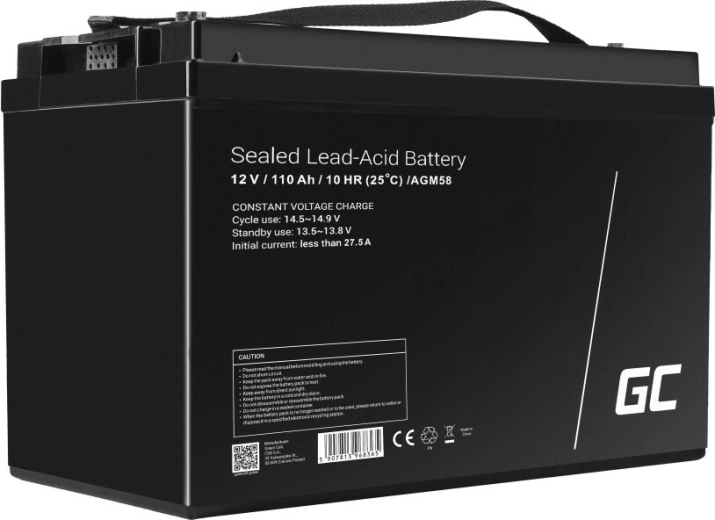 Akumulátor AGM VRLA 12 V 110 Ah je moderní zdroj energie s širokým rozsahem použití v domácnosti i průmyslu. Uzavřená konstrukce s absorpčním skelným rounem (AGM) zajišťuje minimální samovybíjení, stabilní výkon a maximální bezpečnost bez úniku elektrolytu. Ventilově řízené uzavření (VRLA) umožňuje bezúdržbový provoz s životností až 5+ let v závislosti na režimu používání.