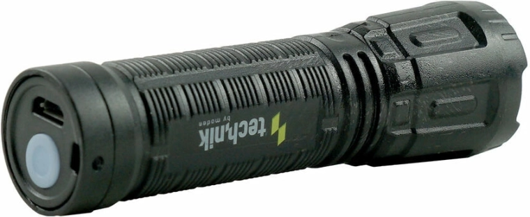 Nabíjení je rychlé a pohodlné přes micro‑USB port – zabudovaná Li‑ion 18650 baterie s kapacitou 800 mAh se dobije zhruba za 1 hodinu. Ovládání obstarává jediné tlačítko, které slouží pro zapnutí/vypnutí i přepínání režimů včetně stroboskopu a SOS.