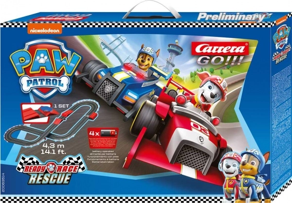 Vstupte do světa závodů s CARRERA GO Tlapková patrola. Díky délce trati 4,3 m a rozměrům po sestavení 147 × 120 cm čekají malé závodníky dynamické rovinky, ostré zatáčky i adrenalinový skokánek. Autíčka v měřítku 1:43 s magnetem a dvojitými kartáčky skvěle drží stopu a poskytují plynulou jízdu.