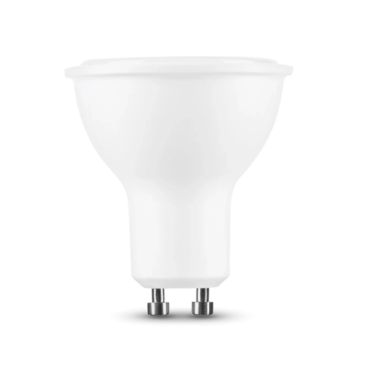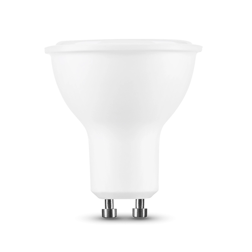 Konstrukce s hliníkovým vnitřkem efektivně odvádí teplo, zatímco plastový plášť snižuje hmotnost a zvyšuje odolnost. Žárovka je vhodná pro vestavná bodová svítidla do sádrokartonu i pro nástěnná a stolní svítidla s paticí GU10.
