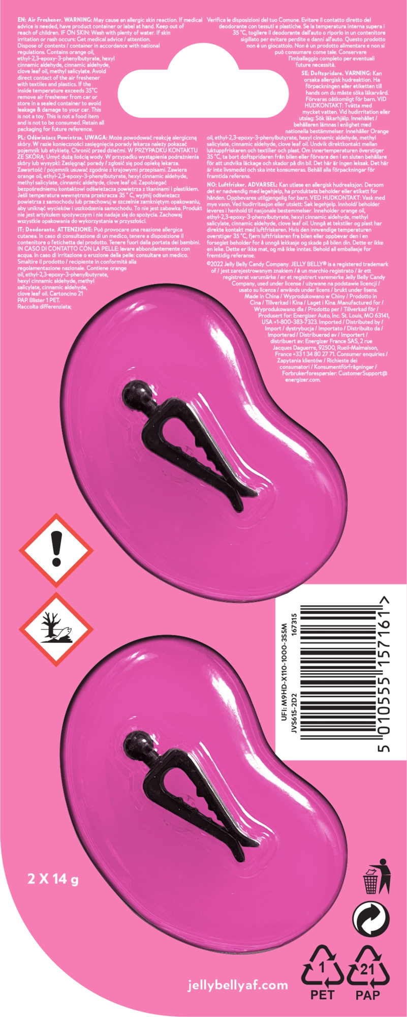 Ikonická vůně žvýkačky rozzáří každou jízdu i pracovní den. Osvěžovač vzduchu Jelly Belly v praktickém provedení clip-on se snadno zasune do větracích otvorů a během okamžiku provoní interiér.