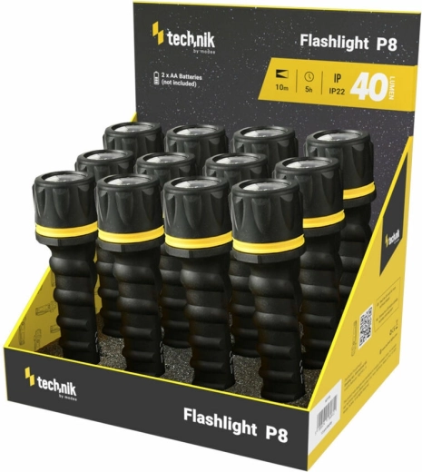 Kompaktní a odolná ruční svítilna Technik MT-P8 je ideální pro každodenní použití, práci i volný čas. Nabízí světelný tok 40 lm, dosvit 10 m a až 5 hodin provozu na 2× AA baterie (nejsou součástí balení). Pogumované tělo zvyšuje odolnost proti pádu z 1 m a svítilna splňuje krytí IP20.