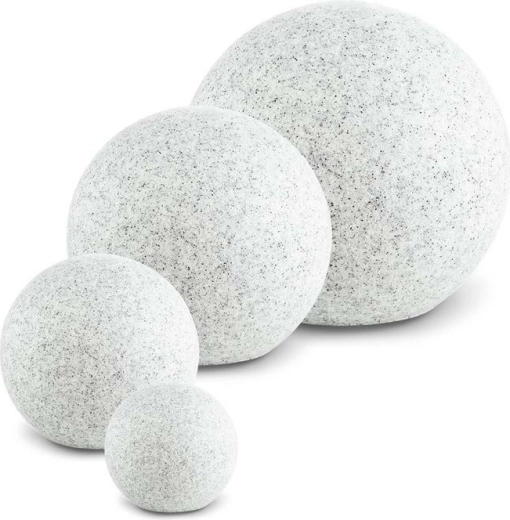 Realistická textura kamene zdobí zahradu i bez rozsvícení. Po setmění koule rovnoměrně rozptyluje světlo a vytváří uklidňující atmosféru na cestách, terasách i mezi záhony.