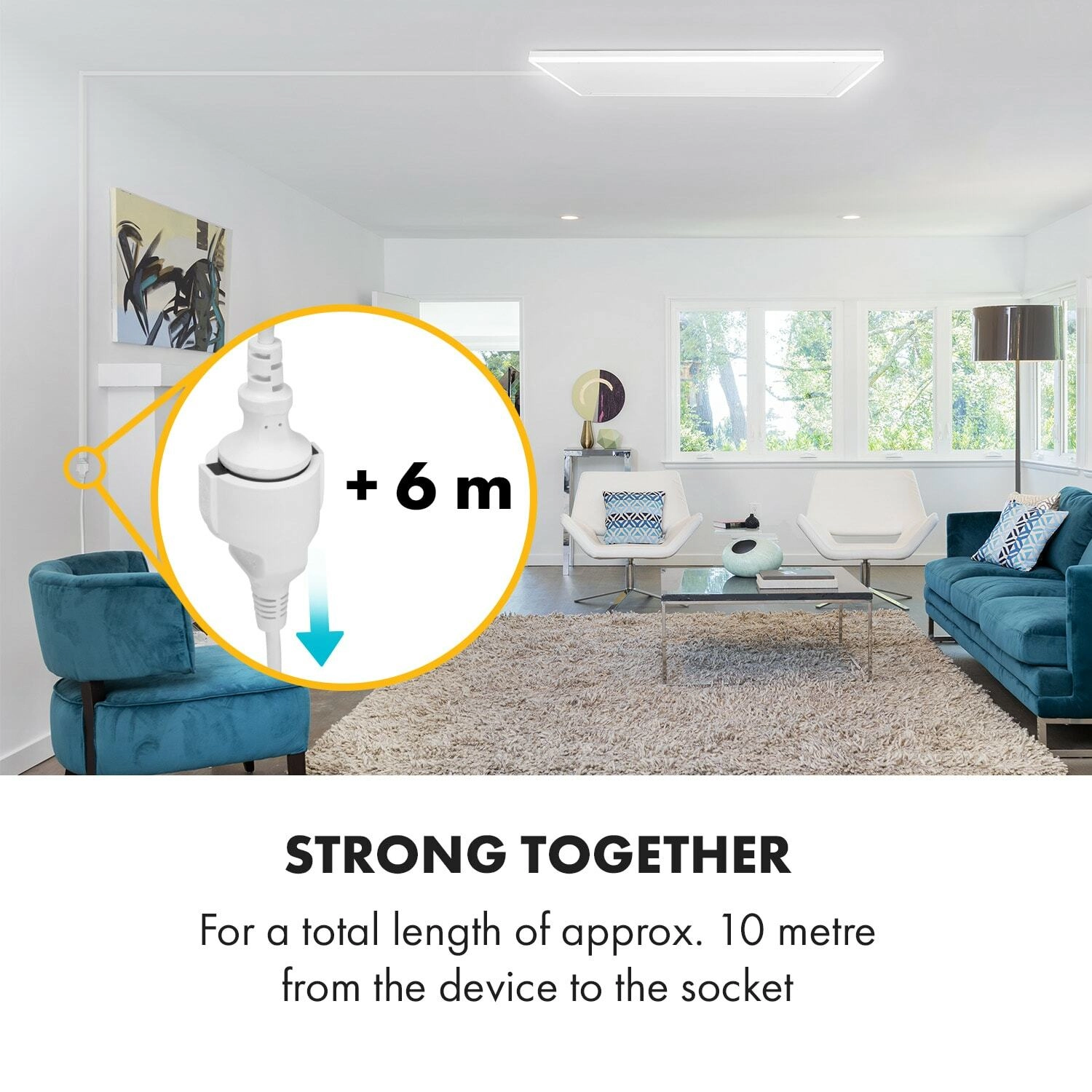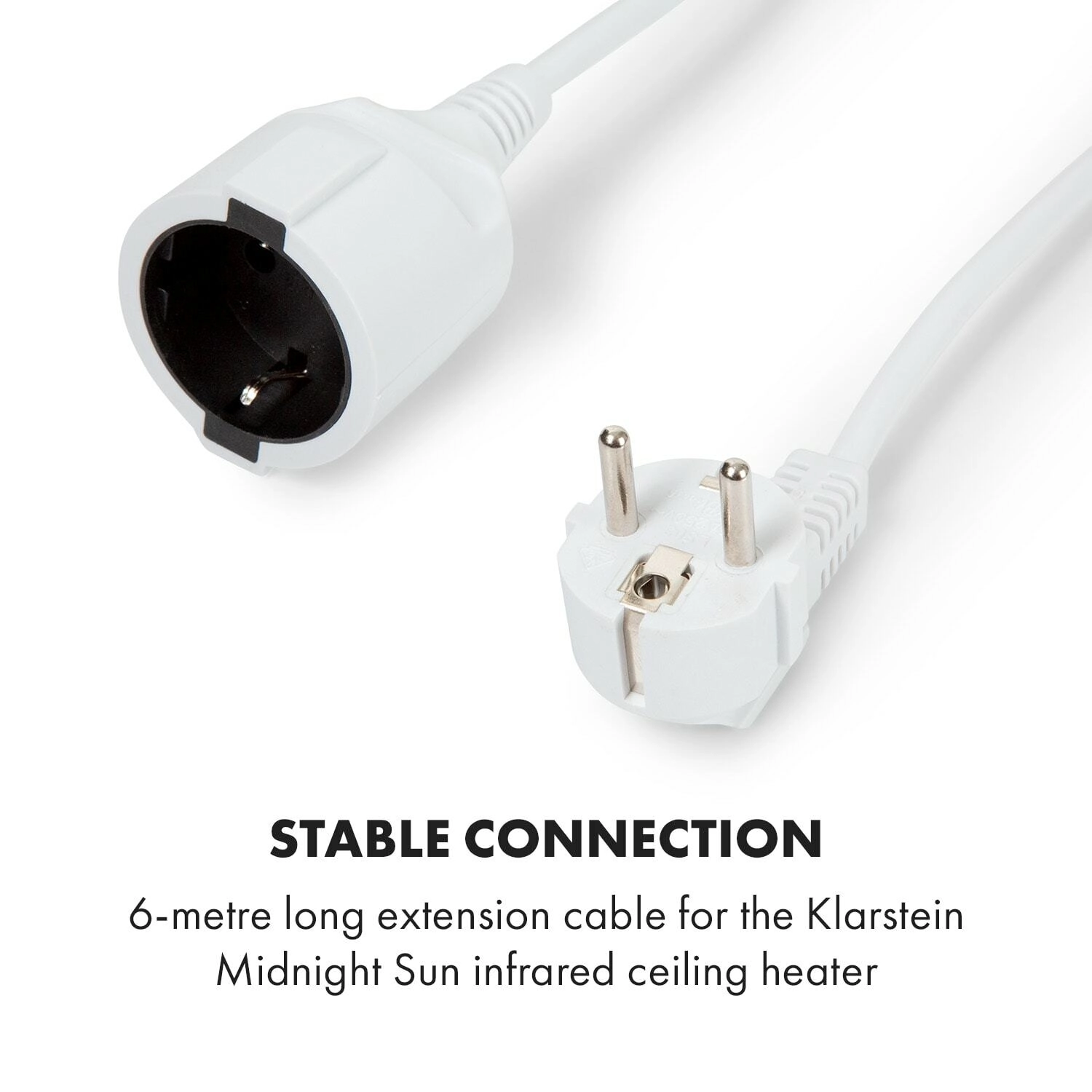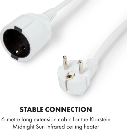 Rozšiřte možnosti instalace stropního infrazářiče Klarstein Midnight Sun díky kvalitnímu prodlužovacímu kabelu o délce 6 m. Získáte tak celkový dosah přibližně 10 metrů mezi zařízením a elektrickou zásuvkou, což usnadní umístění ohřívače přesně tam, kde ho potřebujete.