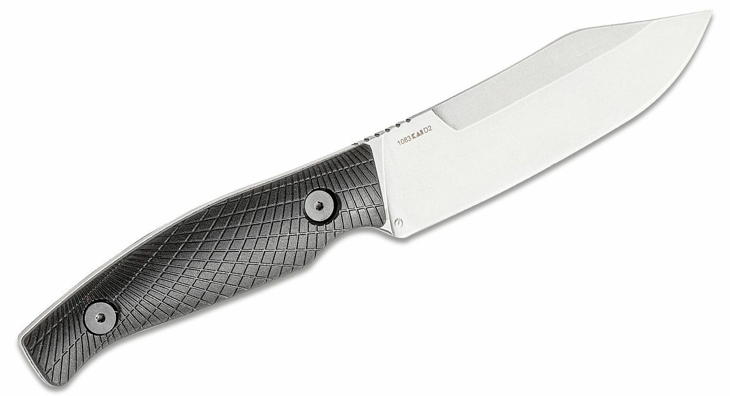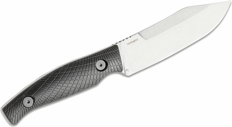 Tvrdá a houževnatá ocel D2 se stonewash úpravou nabízí dlouhodobou ostrost, nižší odlesky a lepší odolnost proti opotřebení v terénu.