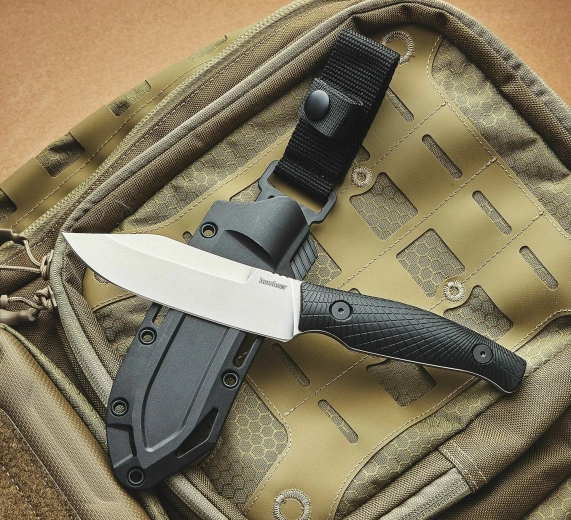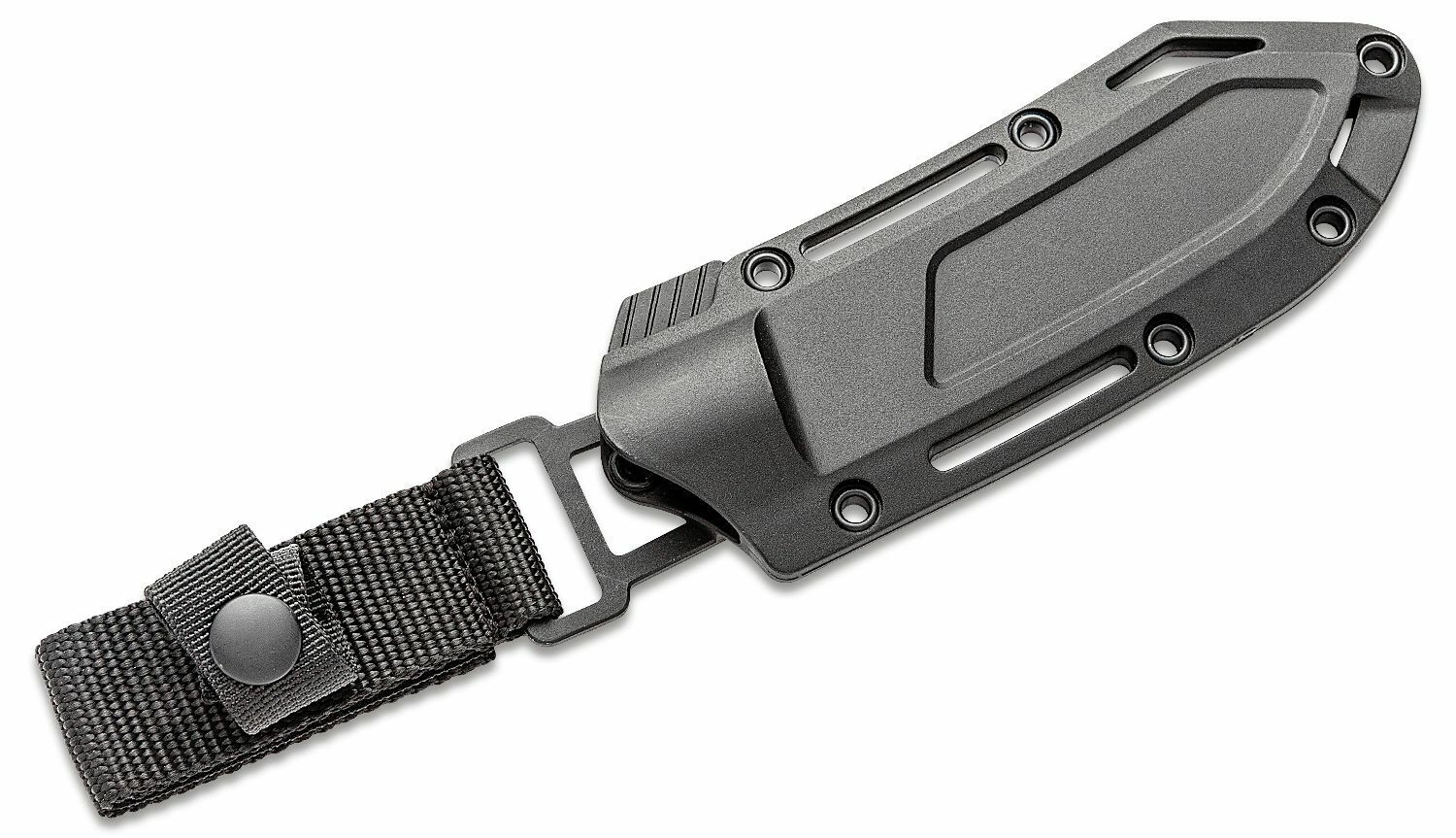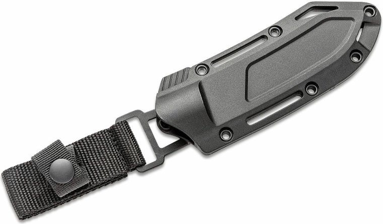Ergonomická rukojeť z FRN s precizně frézovanou texturou zajišťuje jistotu v ruce i za mokra či v rukavicích. Tvarované FRN pouzdro s více možnostmi uchycení a nylonovou pojistkou bezpečně fixuje nůž a umožňuje pohodlné a bezpečné nošení v terénu.