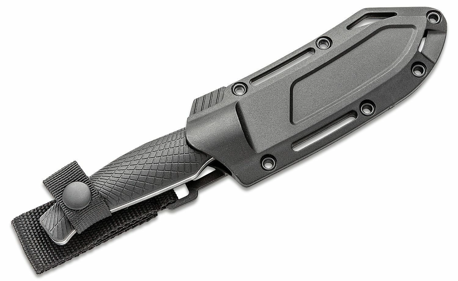 Tvarované FRN pouzdro s vícenásobnými montážními body a nylonovou pojistkou udrží nůž pevně na místě při nošení, včetně polohy špičkou vzhůru.