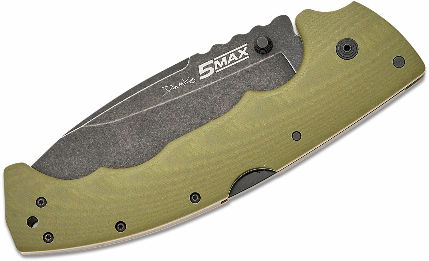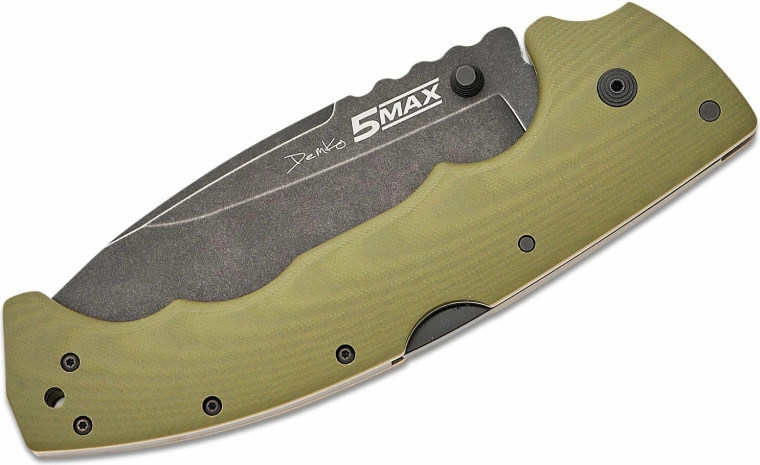 Cold Steel 5 Max Elite vznikl ve spolupráci s nožířem Andrewem Demkem a posouvá hranice toho, co má zvládnout velký EDC nůž. Drop Point čepel z oceli CPM‑S35VN s hladkým ostřím a povrchem Black Stonewash zajišťuje vysokou odolnost proti korozi, dlouhou výdrž ostří a snadnou údržbu.