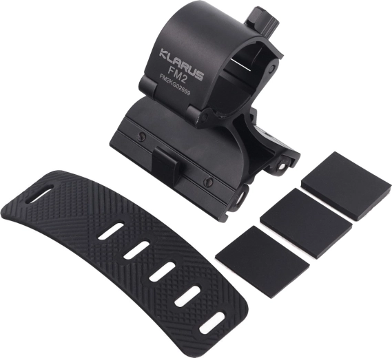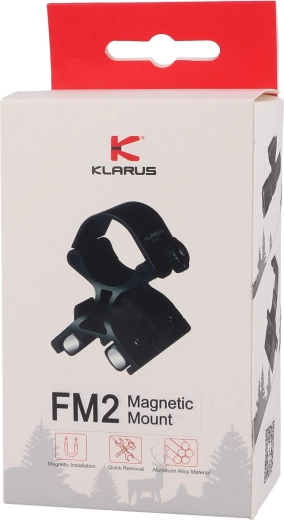 Držák Klarus FM2 je navržen pro rychlou a bezpečnou instalaci svítilny na hlaveň zbraně. Silné magnety v kombinaci se silikonovým páskem zajišťují, že svítilna zůstane pevně na místě, zatímco kvalitní silikonové podložky tlumí otřesy a brání nechtěnému pootočení montáže. Robustní konstrukce z eloxované hliníkové slitiny Mil‑Spec HAIII zaručuje vysokou odolnost v náročných podmínkách.