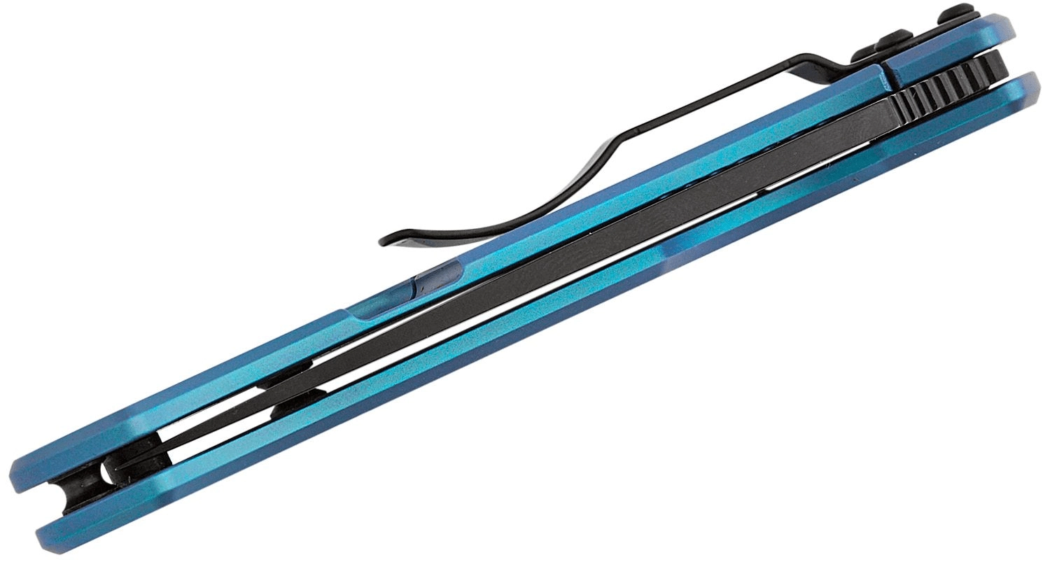 Modrá titanová rukojeť je pevná, lehká a výborně odolává opotřebení. Zámek RIL (Reeve Integral Lock) drží čepel bezpečně při práci, zatímco čtyřpolohový kapesní klip umožní nošení hrotem nahoru/dolů, vpravo/vlevo. Zadní otvor pro šňůrku usnadní zabezpečení i rychlé vytažení z kapsy.