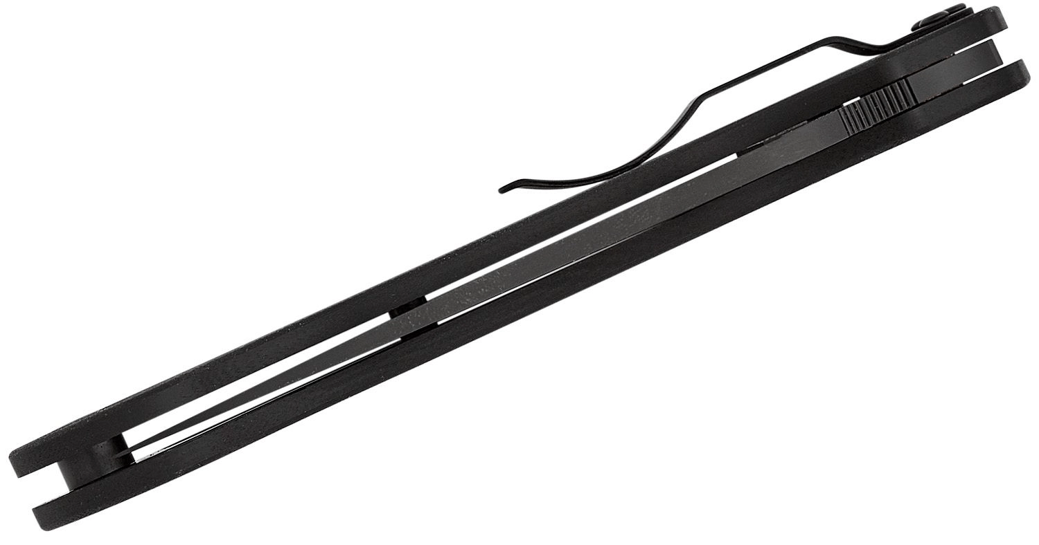Rukojeť z G10 v celočerném provedení je texturovaná pro jistý úchop za sucha i mokra. Nůž se otvírá charakteristickým otvorem v čepeli a je jištěn robustním Compression Lock pro maximální pevnost a bezpečnost. Kapesní klip lze přemontovat do čtyř pozic pro perfektní přizpůsobení nošení.