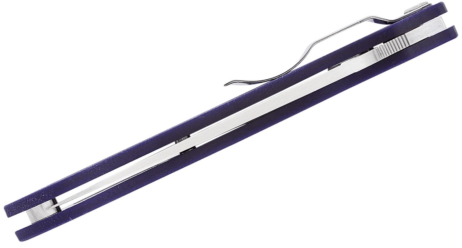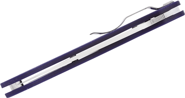 Patentovaný Compression Lock zvyšuje pevnost zámku a zároveň zajišťuje bezpečné zavírání bez nutnosti vsouvat prsty do dráhy čepele. Texturované G10 ve tmavě modré barvě je extrémně odolné a přináší jistý úchop v téměř jakýchkoli podmínkách.