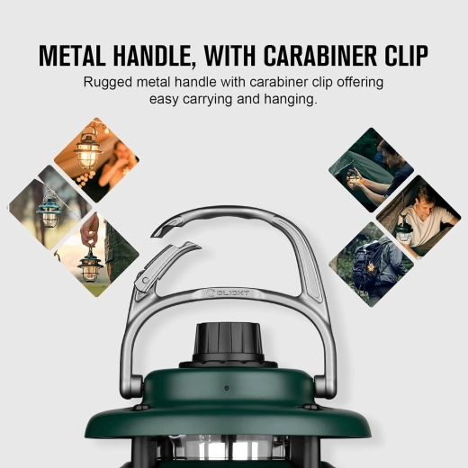 Kompaktní kempingová lucerna OLIGHT Olantern Classic Mini v barvě Forest Green nabízí plynulé stmívání 5–300 lm, přepínání mezi teplým a bílým světlem, až 60 hodin provozu a USB‑C nabíjení. Díky 360° rozptylu světla, kovové rukojeti s bezpečnou přezkou a 1/4" závitu je ideální pro kempování, zahradu i nouzové situace.