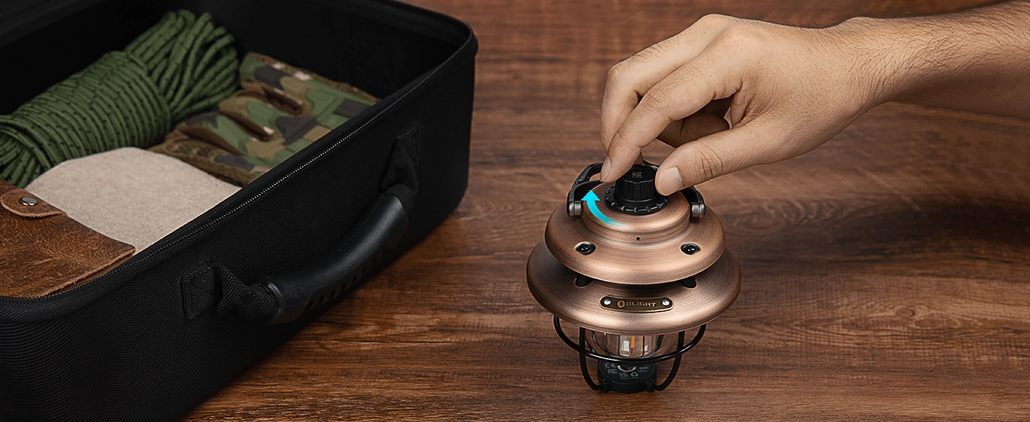 OLIGHT Olantern Classic Mini kombinuje retro vzhled s moderní technologií. Plynule přepínejte mezi teplým ambientním a neutrálně bílým světlem a regulujte jas otočným ovladačem od 5 do 300 lumenů. Praktická vibrační odezva potvrzuje změny režimů, zatímco LED indikátor umožní rychlou kontrolu stavu baterie.