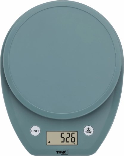 Kompaktní digitální kuchyňská váha TFA MOCHI v elegantní tyrkysové barvě nabízí přesné vážení s rozlišením po 1 g, přehledný LCD displej a snadné přepínání jednotek pomocí tlačítka UNIT. Disponuje funkcí TARE pro dovažování, automatickým vypnutím pro úsporu energie a protiskluzovými nožičkami pro stabilitu na pracovní ploše.