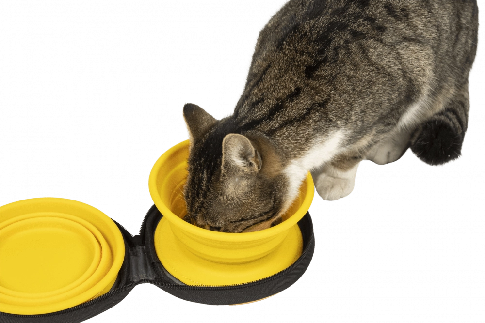 Celá sada je uložena v praktickém pouzdře na zip, kde jsou misky připevněny pomocí suchého zipu – nic se neztratí a vše máte ihned po ruce. Lehká, skladná a hygienická volba pro výlety, dovolené i každodenní procházky.