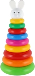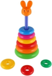 Oblíbená vzdělávací hračka pro nejmenší: barevná plastová pyramida s kroužky o výšce 28 cm, která podporuje rozvoj jemné motoriky, koordinaci oko‑ruka a poznávání barev a velikostí. Vhodná od 12 měsíců, ve 2 variantách a prakticky balená v síťce.
