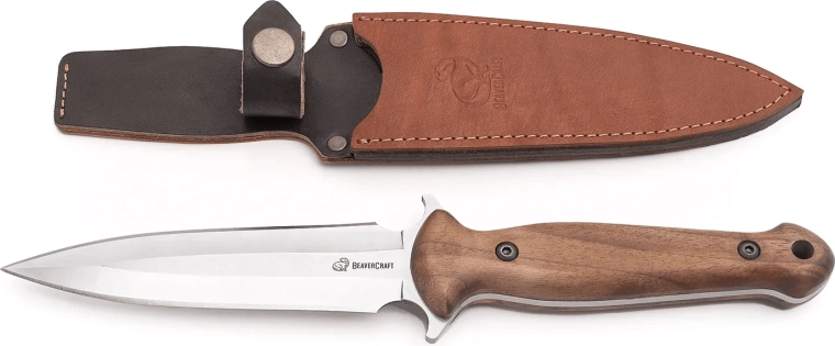 Robustní taktický nůž TLK2 od Beavercraft je spolehlivý nástroj pro outdoor, turistiku i každodenní použití. Nabízí čepel spear point z nerezové oceli X50CrMoV15 s výbornou odolností proti korozi, full-tang konstrukci pro maximální pevnost a ergonomickou ořechovou rukojeť s jistým úchopem. Součástí je kožené pouzdro na opasek pro bezpečné a pohodlné nošení.