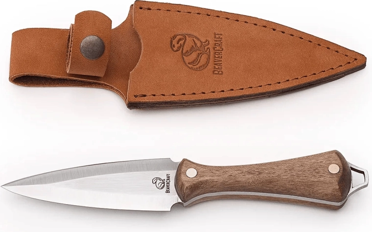 Kompaktní krční dýka BeaverCraft NCK1 nabízí pevnou full-tang konstrukci, nerezovou ocel X50CrMoV15 a ergonomickou rukojeť z evropského ořechu. Skvěle se hodí pro každodenní nošení, turistiku i kempování a je dodávána s prémiovým koženým pouzdrem pro bezpečné a stylové nošení na krku nebo na opasku.