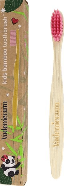 Dětský zubní kartáček Vademecum KIDS Bamboo je šetrná volba pro zdravé zoubky i přírodu. Je vyroben z 100% biologicky rozložitelného bambusu s certifikací FSC, má jemné nylonové štětiny a recyklovatelný kartonový obal. K dispozici jsou 2 barvy – růžová a modrá.