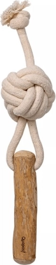 Hračka Quapas! Shoot je skvělá volba pro každodenní zábavu i trénink. Přírodní kávovníkové dřevo při žvýkání pomáhá čistit zuby a omezovat tvorbu zubního plaku, zatímco pevné bavlněné lano je ideální na přetahování i aportování. Díky kvalitním materiálům si hračka udržuje dlouhou životnost i při intenzivním používání.