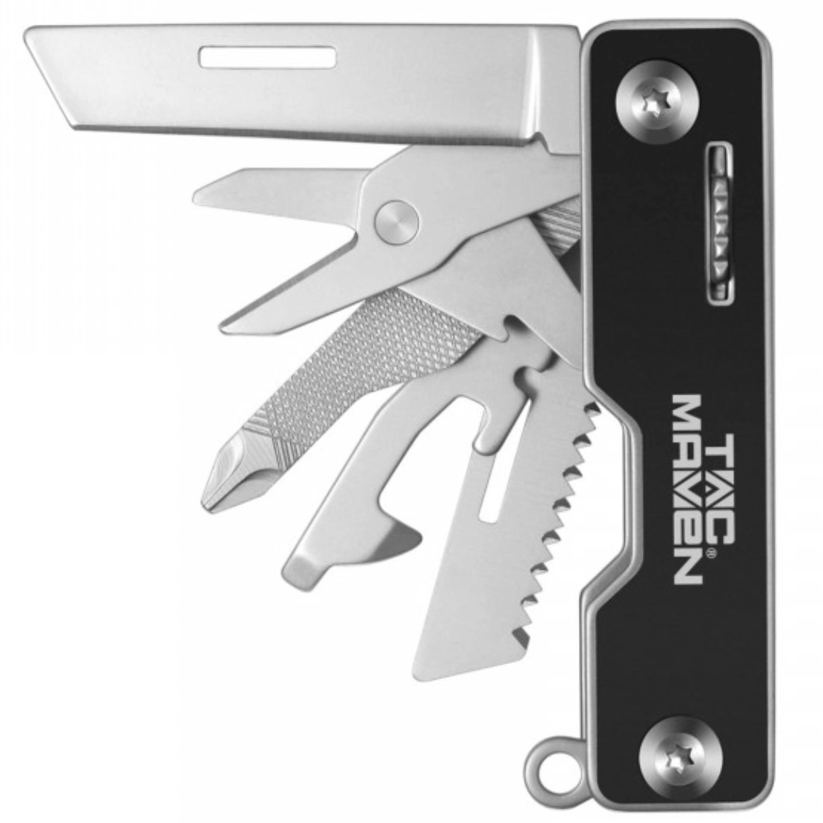 Kompaktní a všestranný multitool Pentagon Dagmar Tac Maven v elegantní černé barvě nabízí spolehlivou pomoc pro každodenní použití i outdoor. Díky nerezové oceli, nízké hmotnosti 83 g a rozměrům 8,3 × 1,8 × 2,2 cm je ideální do kapsy či na klíče.