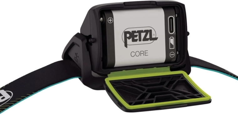 Součástí je akumulátor PETZL CORE s nabíjením přes USB‑C. Lampa funguje i na 3× AAA (nejsou v balení) a automaticky rozpozná zdroj napájení pro optimální výkon.