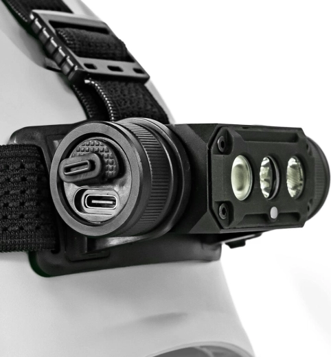 Výkonná čelovka Technik H33 nabízí světelný tok 1200 lm, kombinaci 2× SST20 LED + RGB, USB‑C nabíjení a vyměnitelnou baterii 18650. Ideální pro turistiku, práci i kempování: má 3 úrovně jasu, červené/zelené/modré světlo, SOS a odolnou hliníkovou konstrukci s IP44.