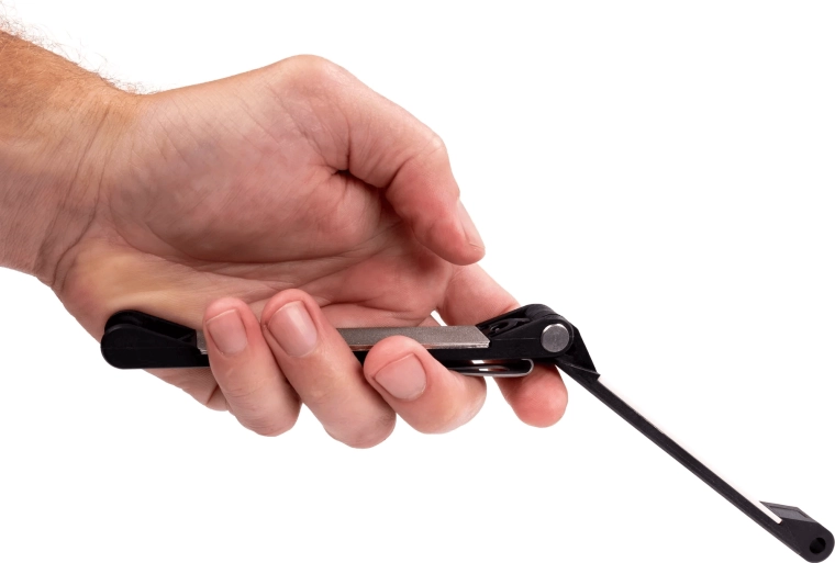Robustní a zároveň lehká konstrukce se skládá do kapesního formátu, který snadno připnete sponou na kapsu, batoh nebo vestu. Je to praktický nástroj pro lov, rybaření, turistiku i každodenní použití, kdykoli potřebujete rychle vrátit ostří vašim nožům.
