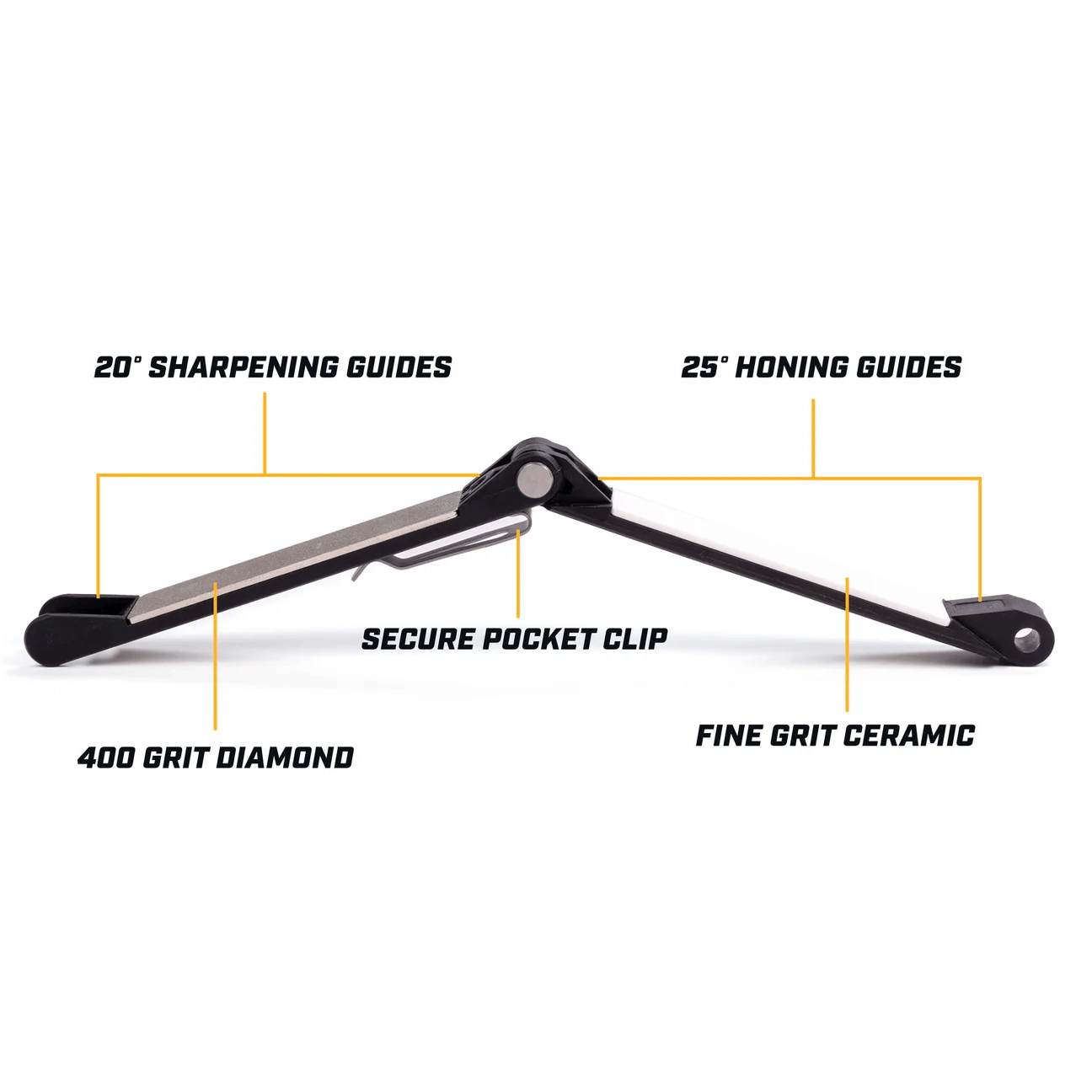 Hledáte spolehlivý kapesní brousek na cesty, do dílny i do přírody? WORK SHARP Folding Field Sharpener nabízí vše v jednom: diamantovou desku 400 grit pro efektivní obnovu ostří a jemnou keramiku pro finální honování. Integrovaná vodítka 20°/25° pomohou udržet správný úhel, takže kvalitní výsledek zvládne opravdu každý.