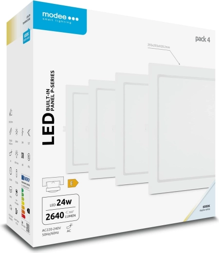 Hledáte spolehlivé a úsporné stropní svítidlo do kanceláře, chodby nebo domácnosti? LED panel Modee s příkonem 24 W a světelným tokem 2640 lm poskytuje intenzivní, rovnoměrné a bezblikové osvětlení ve studené bílé (6000 K), které podporuje soustředění a čistý vzhled interiéru.