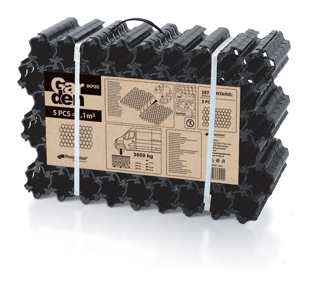 Vysoce odolný plast s maximální nosností 3600 kg zaručuje dlouhou životnost i při pravidelném zatížení osobními vozy. Díky snadnému zámkovému systému panely rychle spojíte bez speciálního nářadí. Praktické balení 5 kusů pokryje 1,1 m², což usnadňuje kalkulaci materiálu pro menší i větší projekty.