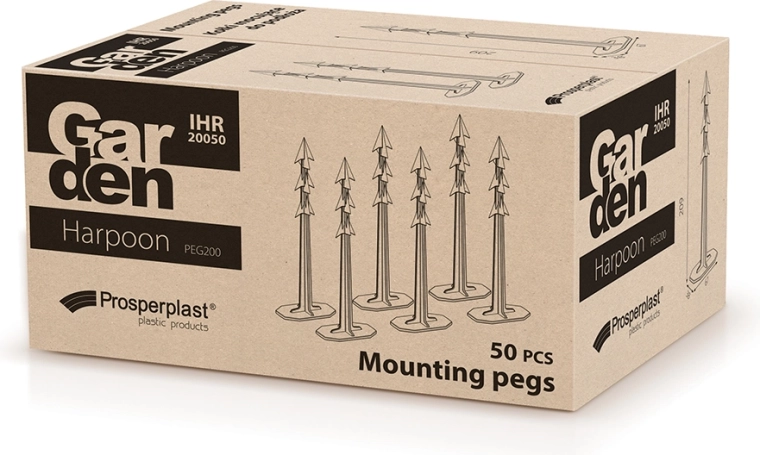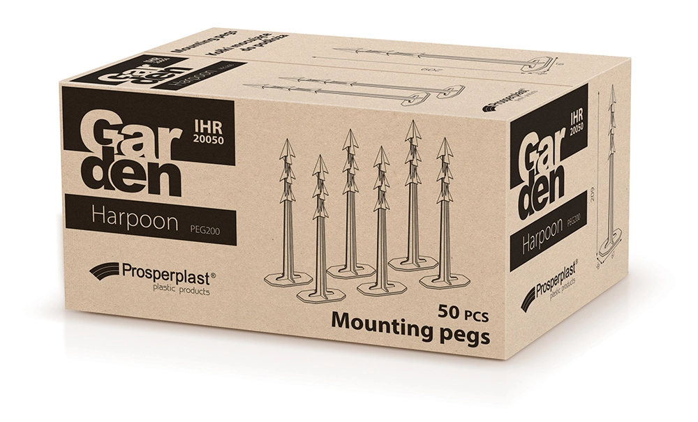 Spolehlivě zafixujte zahradní textilie, fólie a okraje záhonů. Upevňovací kolíky HARPOON PEG 200 kombinují délku 20,9 cm pro hluboké ukotvení s profilovaným trnem s háčky, který drží materiál na místě i v náročnějších podmínkách. Pevný plast odolává vlhkosti, mrazu i UV záření, takže si udrží tvar a funkčnost po dlouhou dobu.