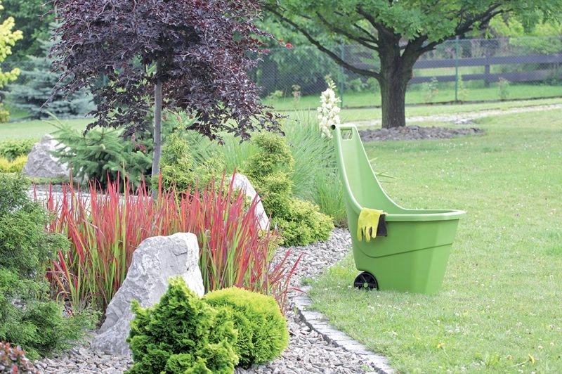 Stabilní podvozek a integrované madlo umožní pohodlné tažení i při plném zatížení. Ideální do zahrady, na dvůr i kolem domu.