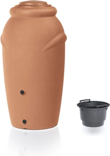 Stylový sud na dešťovou vodu Aquacan Baby o objemu 210 l v elegantní cihlové barvě šetří vodu i peníze a zároveň zkrášlí zahradu. Díky kompaktním rozměrům se vejde i do menších prostor a snadno se připojí ke svodu. Ideální pro zalévání záhonů a trávníků, s možností pohodlného odběru vody. Úspora vody, praktické použití a dekorativní vzhled v jednom.