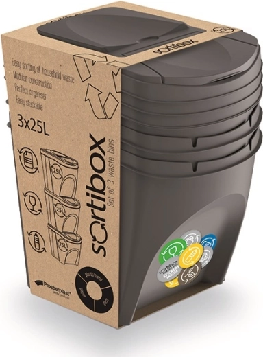 Každý koš o objemu 25 l je navržen pro rychlý a hygienický provoz. Vertikální stohování šetří místo a umožňuje přehledně oddělit plasty, papír, sklo či směsný odpad. Moderní provedení v odstínu šedý kámen zapadne do každého interiéru.
