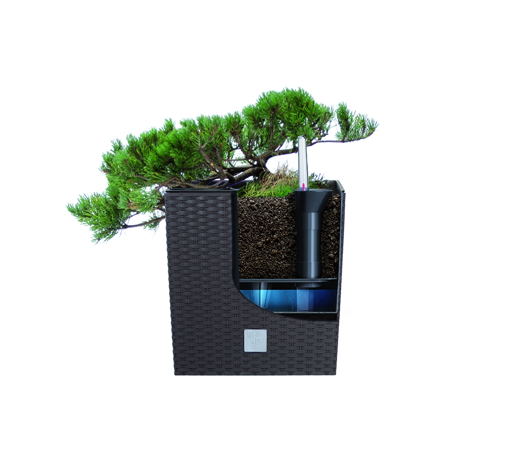Textura napodobující ratan dodává květináči moderní a nadčasový charakter, který vynikne na terase, balkoně i v interiéru.