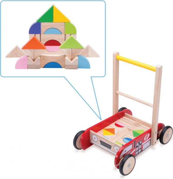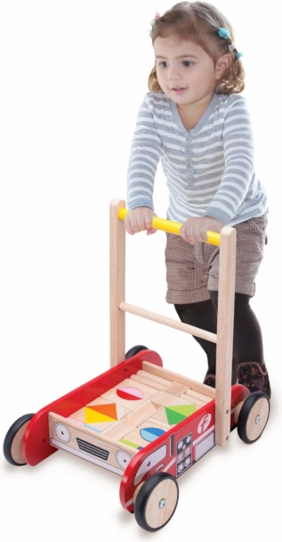 Součástí je sada 32 kostek v různých tvarech a barvách, které podporují koordinaci oko–ruka, logické myšlení a kreativitu. Děti mohou kostky převážet, stavět nebo je ukládat do korby, což rozvíjí trpělivost a prostorové vnímání.