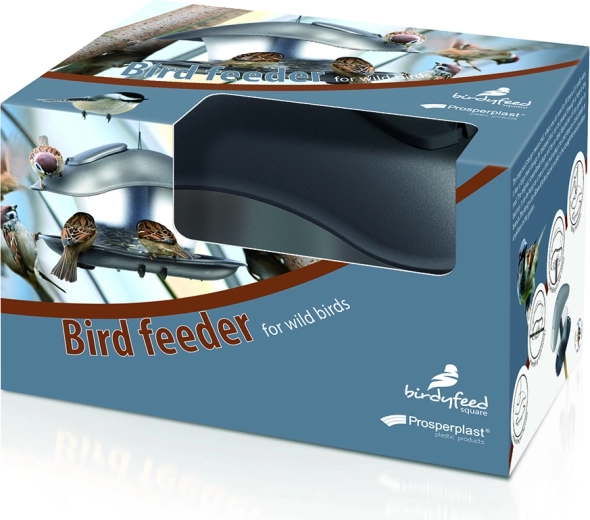 Stylové krmítko pro ptáky s moderním designem a odolnou konstrukcí z plastu a kovu. Průhledná nádoba umožňuje snadnou kontrolu krmiva, šikmá střecha chrání před deštěm a sněhem a flexibilní instalace nabízí zavěšení, upevnění k zábradlí nebo umístění na kůl.