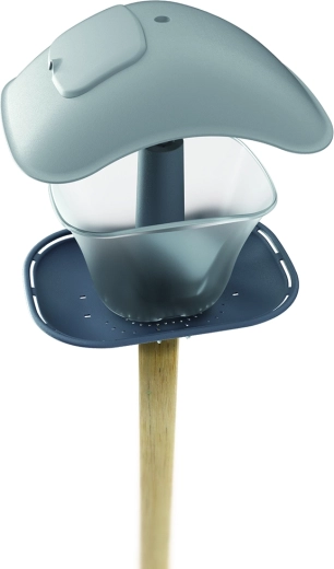 Díky promyšlené konstrukci se krmivo snadno sype a zůstává chráněné pod stříškou. Instalaci přizpůsobíte svému prostředí – krmítko lze zavěsit na větev, připevnit k zábradlí pomocí pásky nebo usadit na kůl pro stabilní stojící řešení.