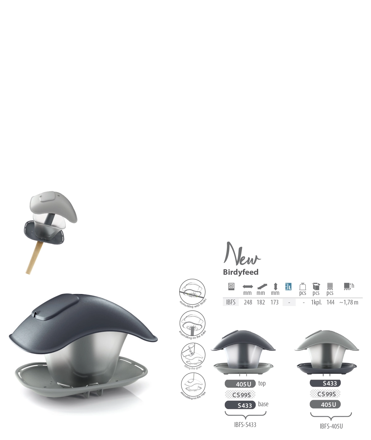 Šikmá stříška v antracitové barvě účinně stíní a chrání krmivo před vlhkostí, aby zůstalo čerstvé a lákavé pro ptáky.